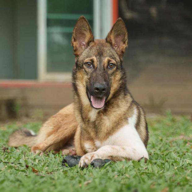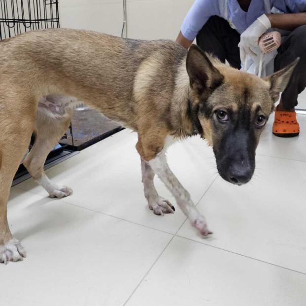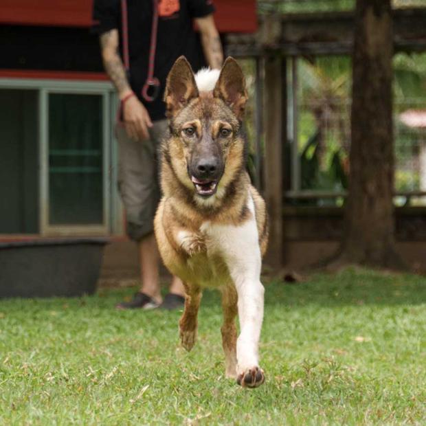 Elysium was a six-month old puppy when he arrived at Soi Dog Foundation after being found abandoned in a school. During his physical examination on entry, the vet found Elysium had suffered atrophy in his right leg. Unresponsive to medication, Elysium's right front leg was amputated. Today, Elysium is weight bearing on his remaining three limbs and walks normally without any signs of pain or lameness. He is ready to find his forever home!