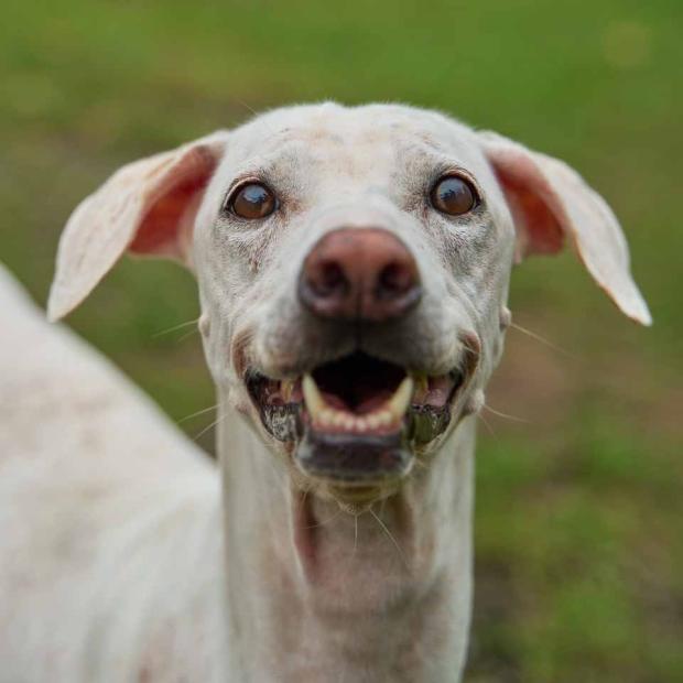 Behind that smile is a calm, gentle and friendly personality. I approach people politely for attention, and no one can resist a stroke of my white velvety fur. Somehow I manage to keep it soft and pristine despite all of my antics around the shelter! I enjoy my walks and am quite comfortable and confident on the lead.