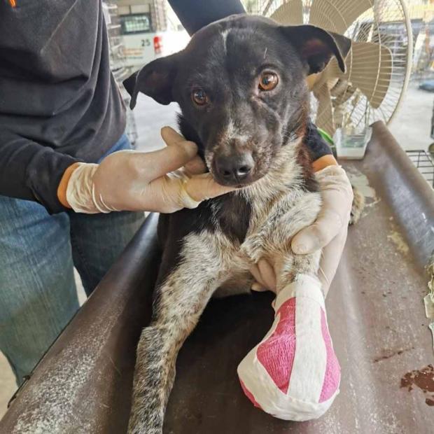 In a very traumatic turn of events, I lost half of my left front leg in a road traffic accident. By a stroke of luck, Soi Dog had a mobile team in the area at the time, and when they found me they transferred me to the shelter for the critical care I needed. This included the amputation of the rest of my leg which was badly infected and painful.