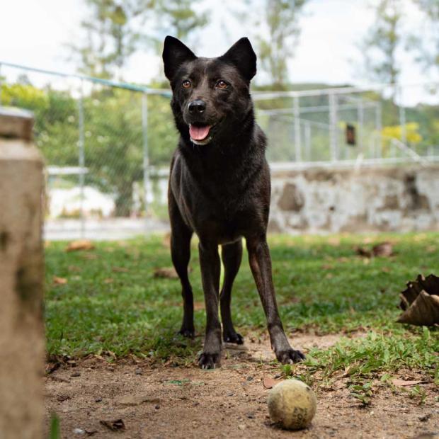 I was found living on some empty farmland with a group of other dogs. There was no food, no one looking after us and nowhere to take shelter from the hot sun. Knowing we had no future there, Soi Dog brought us to their shelter for safety.