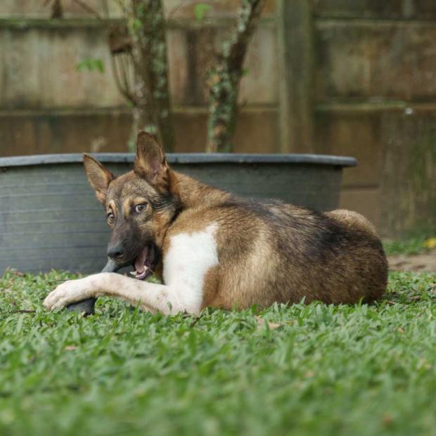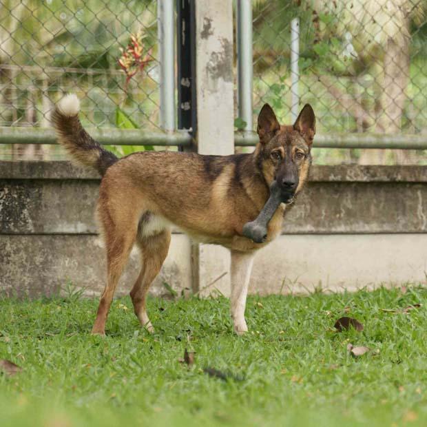 Elysium was a six-month old puppy when he arrived at Soi Dog Foundation after being found abandoned in a school. During his physical examination on entry, the vet found Elysium had suffered atrophy in his right leg. Unresponsive to medication, Elysium's right front leg was amputated. Today, Elysium is weight bearing on his remaining three limbs and walks normally without any signs of pain or lameness. He is ready to find his forever home!