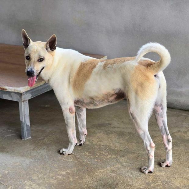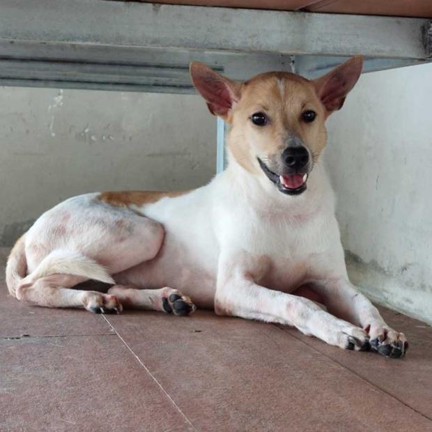 I came to Soi Dog in a terrible state, having been hit by a car. My left hind leg was fractured, and blood was pouring from my nose and mouth. The vets rushed me into surgery, stemmed the bleeding and put my bones back together with a plate and screws.