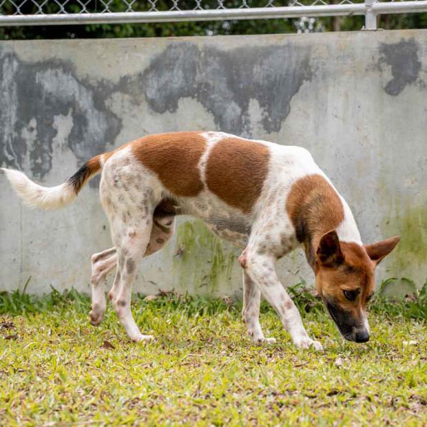 Add me to the long list of dogs who arrived at Soi Dog after meeting with a road traffic accident. My injuries were quite severe – two fractured femurs and a dislocated pelvis – but not to the extent that I had to lose a leg as many other dogs do. The vets managed to put my bones back together with plates and screws and make me almost as good as new.