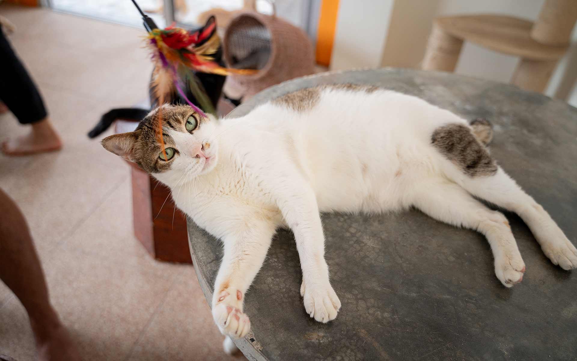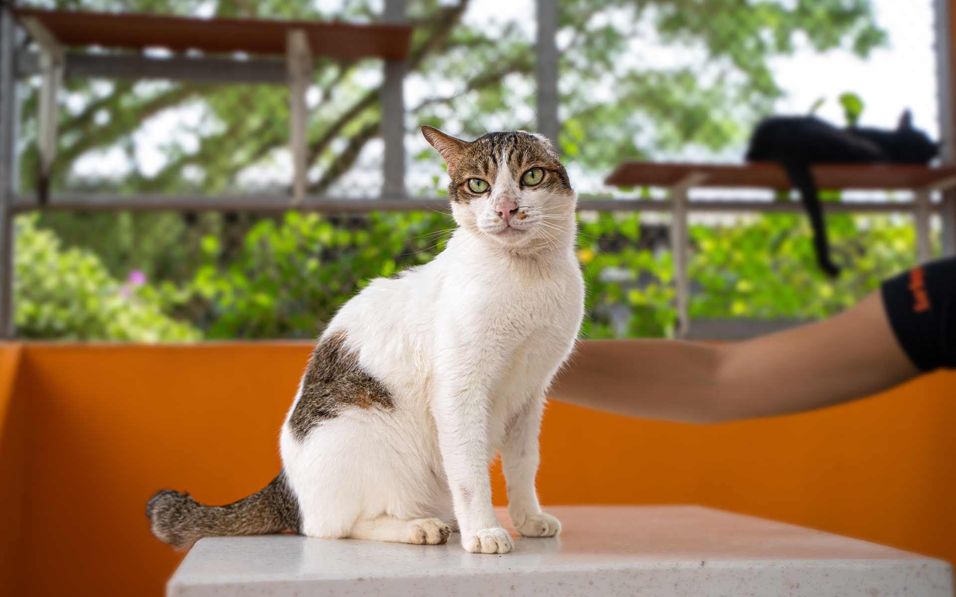 These days, you'll find me happily settled in one of the cat suites with my friends. I wear a protective cone to shield my sensitive skin, but I've turned this small challenge into my secret weapon for earning extra cuddles from visitors. Through it all, I've learned that life's challenges only make us stronger.