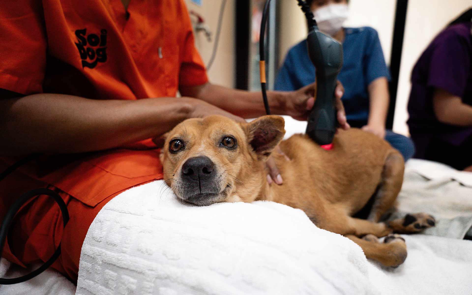 โอเปียได้รับการส่งตัวมารักษาที่มูลนิธิเพื่อสุนัขในซอย (ซอยด๊อก) อย่างเร่งด่วน โดยมีสัตวแพทย์และเจ้าหน้าที่ดูแลอย่างดีที่สุดนับตั้งแต่วันนั้นเป็นต้นมา แม้แผลที่หลังจะหายดีแล้ว แต่ขาของโอเปียยังคงมีสภาพพิการเช่นเดิม จะสามารถเดินหรือวิ่งเล่นได้ก็ต่อเมื่ออยู่บนวีลแชร์เท่านั้น